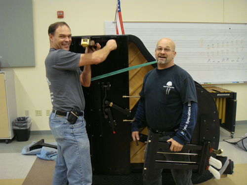 We moved Carol’s Grand Piano to it’s new home at Tracy High. Not much more to say….pictures say it all (click on the pictures to make them larger). I would like to thank Bob and Edmund for taking such good care of the piano during the move!