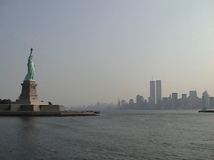 Suddenly, she yelled to me….”Mike…a plane just crashed into the World Trade Center”. Yikes! We were just there the month before and took the picture shown below from the Ferry from New Jersey.