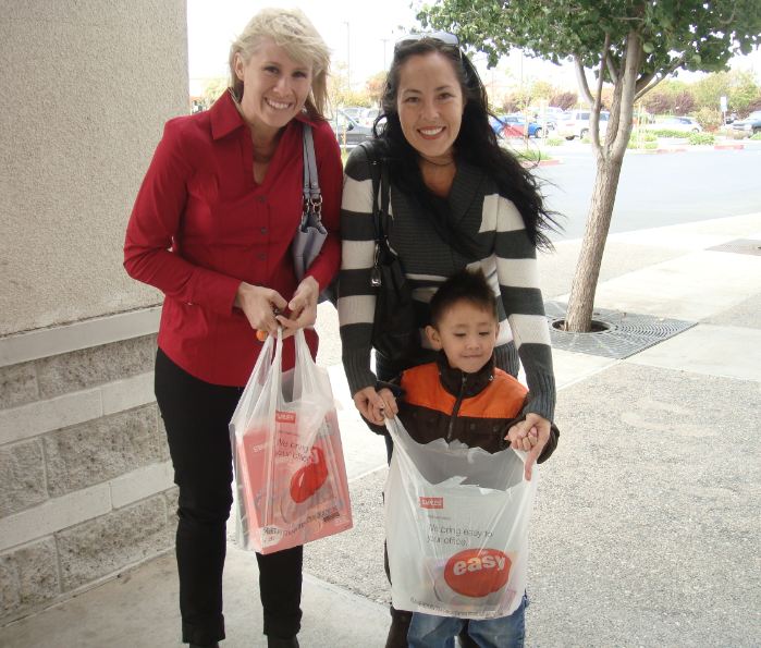 Teachers Joan Juarez (with her kids!) and Tori Klug from North Elementary School in Tracy, CA went with me on a shopping SPREE yesterday to Staples in Tracy for school supplies.