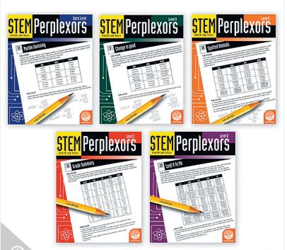 “Sharpen kids’ deductive reasoning skills with these challenging logic puzzles that feature popular STEM subjects. Each puzzle categorizes information and lists clues below. By using the “cross-out-and-circle” technique, kids will practice logical thinking in order to find the correct answer. Each book includes 50 full-page puzzles with solutions. Printed in the USA. Free orange tote bag with purchase.”
