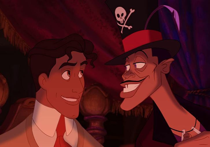 Well……as we find out, Prince Naveen is broke and he is looking to marry rich. He hooks up with the evil Dr. Facilier (Keith David) who makes the Prince’s butler the Prince, and Prince Naveen….a frog!