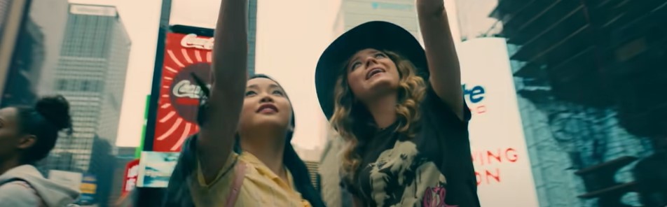 On the senior trip to New York City, Lara Jean, with her best friend, Chris (Madeleine Arthur), take in the sites, take a bunch of selfies, then find themselves at…..NYU.