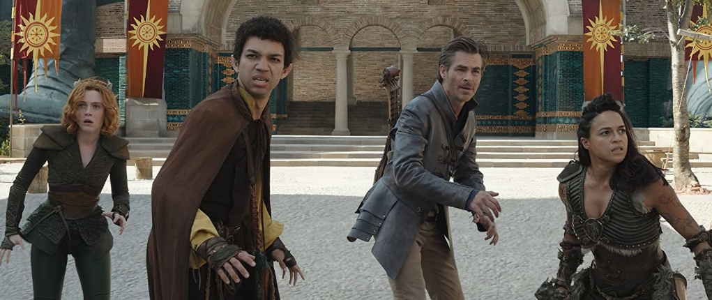Pissed off, Edgin picked up his old ways as a thief with his gang: old friend Holga (Michelle Rodriquez), Sorcerer Simon (Justice Smith), and Shape Shifter Doric (Sophia Lillis).
