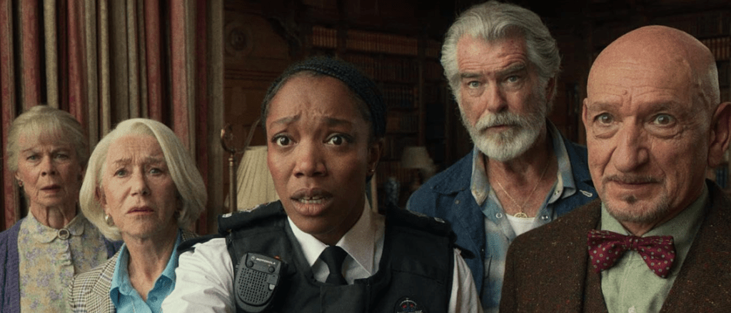 Four seniors citizens, Elizabeth (Helen Mirren), Ron (Pierce Brosnan), Ibrahim (Ben Kingsley), and Joyce (Celia Imrie) run “The Thursday Murder Club” at their senior citizen home, to investigate, and hopefully solve, cold case murders.